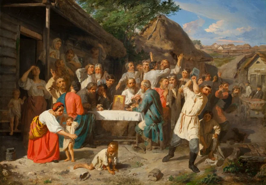 Автор картины: Карнеев Аким Егорович "Общество трезвости. Зарок не пить"